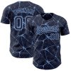 Custom Navy Red 3D Pattern Design Curve Lines Authentic Baseball Jersey