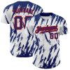 Custom White Navy-Red 3D Pattern Design Abstract Sharp Shape Authentic Baseball Jersey